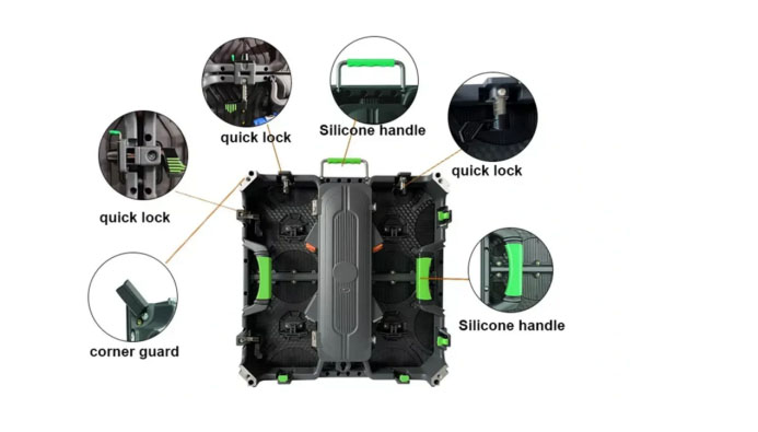 Strong and impact locks for each cabinet make easier and more quick installation and dismantle. Removable power/control box make front and rear maintenance faster. Test button, power and data indicator, LCD monitor are very helpful in every event. Smart design circuit to make horizontal and vertical without ghost line. Design to prevent LED from caterpillars and cross type appearance.