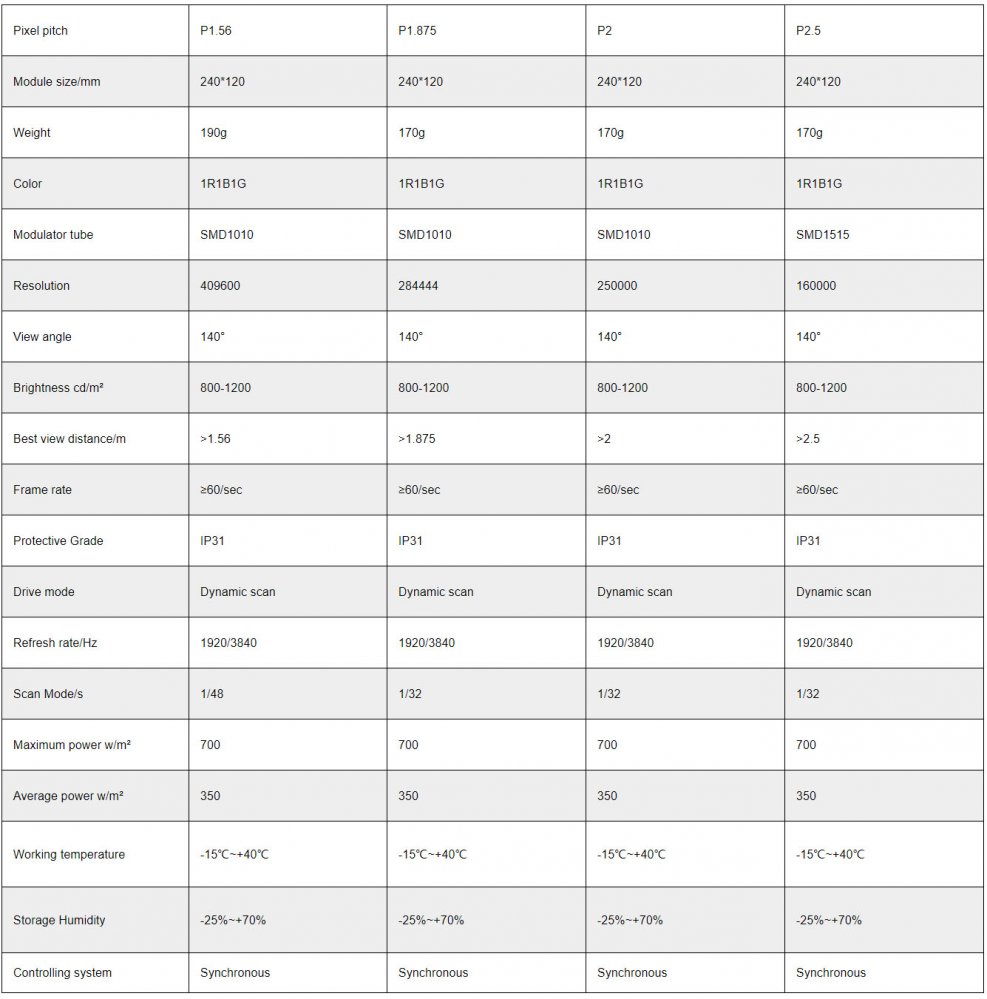 The dimensions of flexible led modules are 240 * 120 (mm) and 320 * 160 (mm). These modules will be the basic elements to build the entire screen.