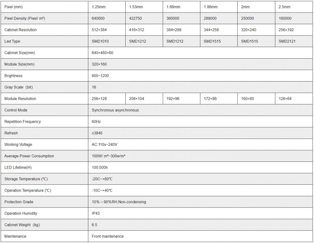 Full front maintenance,Module, receiving card, Hub card, power supply takes out from front side.