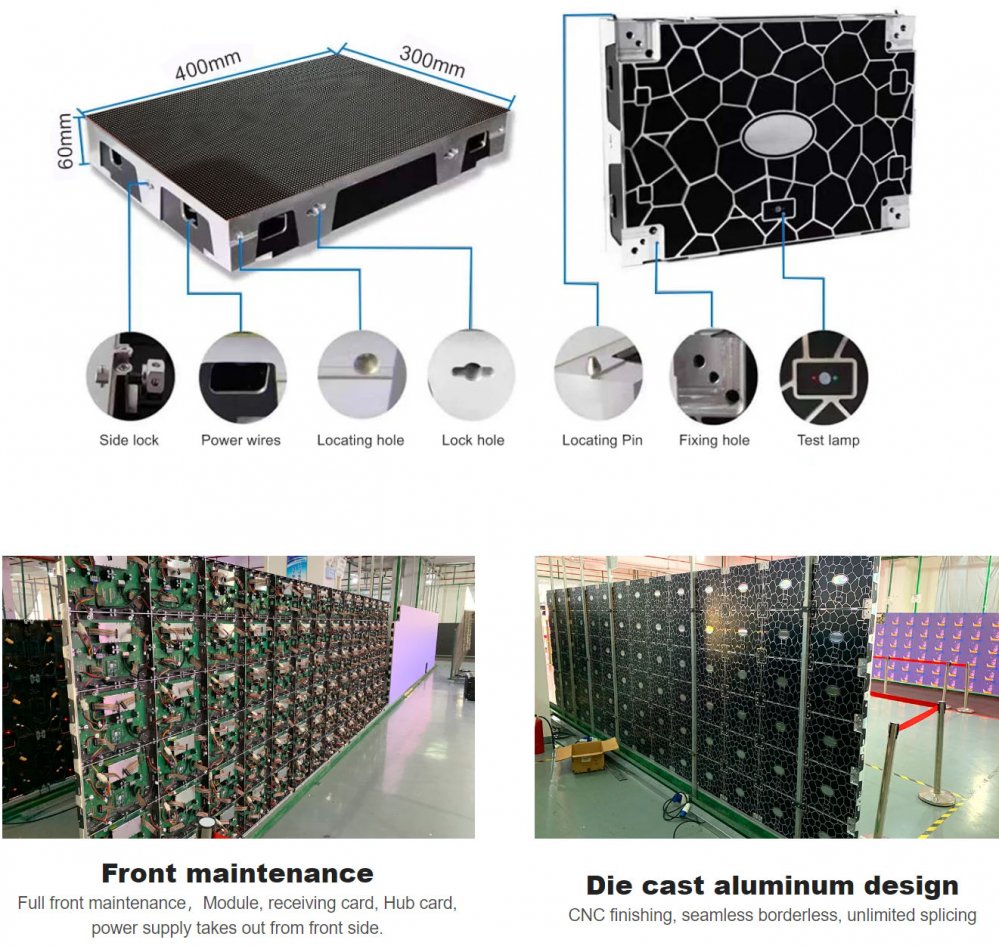 Full front maintenance,Module, receiving card, Hub card, power supply takes out from front side.