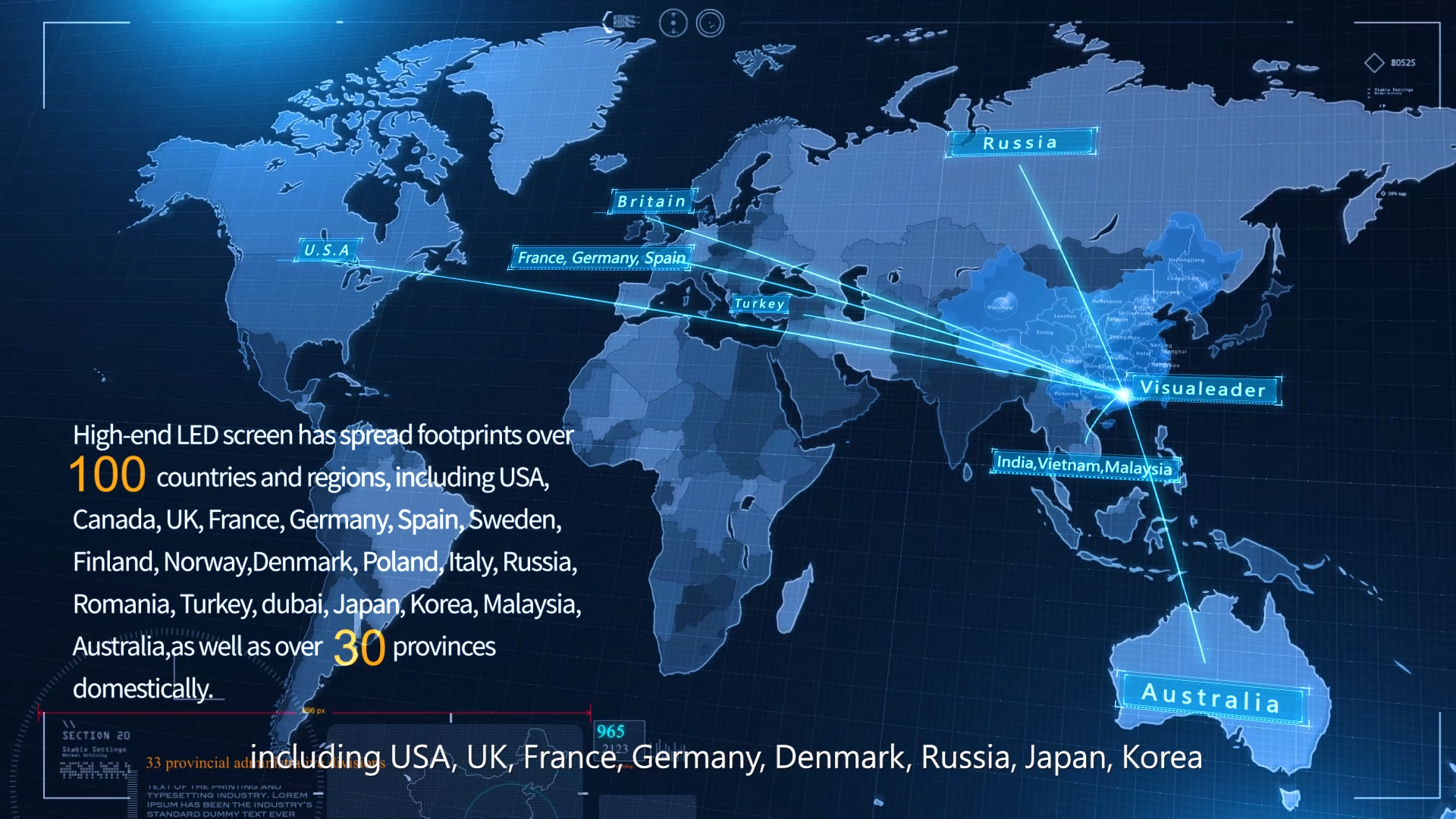 The company's LED display products are exported to more than 100 countries and regions including the United States, Britain, France, Germany, Spain, the Netherlands, Switzerland, Italy, Australia, Japan and South Korea. The company's service network covers the global market.